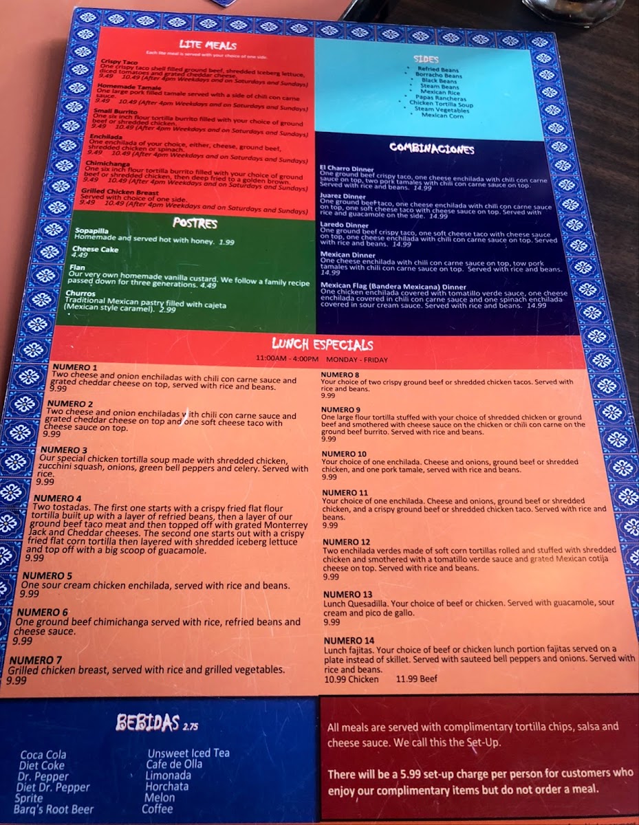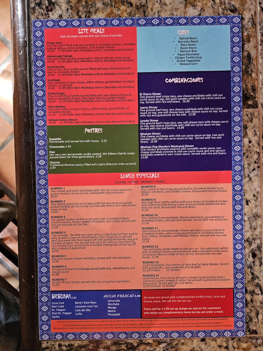 Start your culinary journey with mouthwatering sides like Cup of Tortilla Soup or Elotes Con Crema at only $3.99. For lunch, indulge in specials like the Numero 8 featuring crispy beef or chicken tacos, served alongside hearty rice and beans for just $9.99.