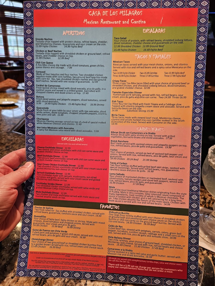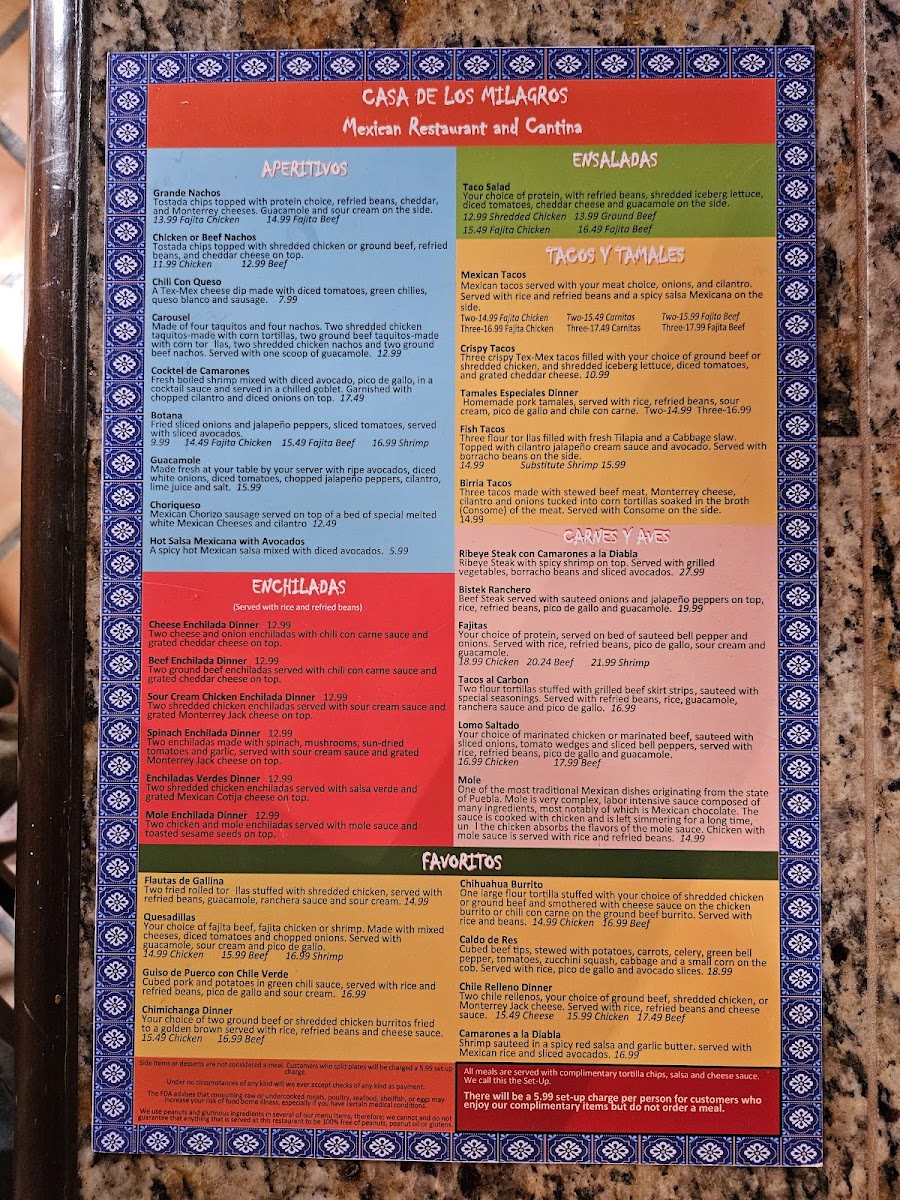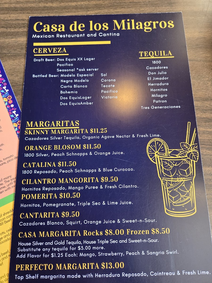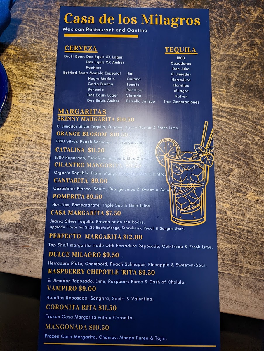 Casa De Los Milagros Mexican Restaurant And Cantina Menu (2025 Update)